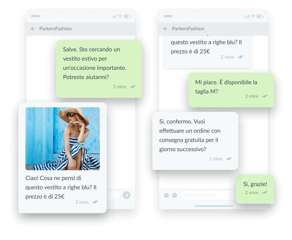 L’azienda può approfittarne per inviare offerte lampo, messaggi promozionali, messaggi di upsell/cross-sell a seguito di un acquisto iniziale. Oppure consigli di acquisto basati sul comportamento del cliente o sugli acquisti precedenti (sfruttando in questo caso la potenza dei bot).