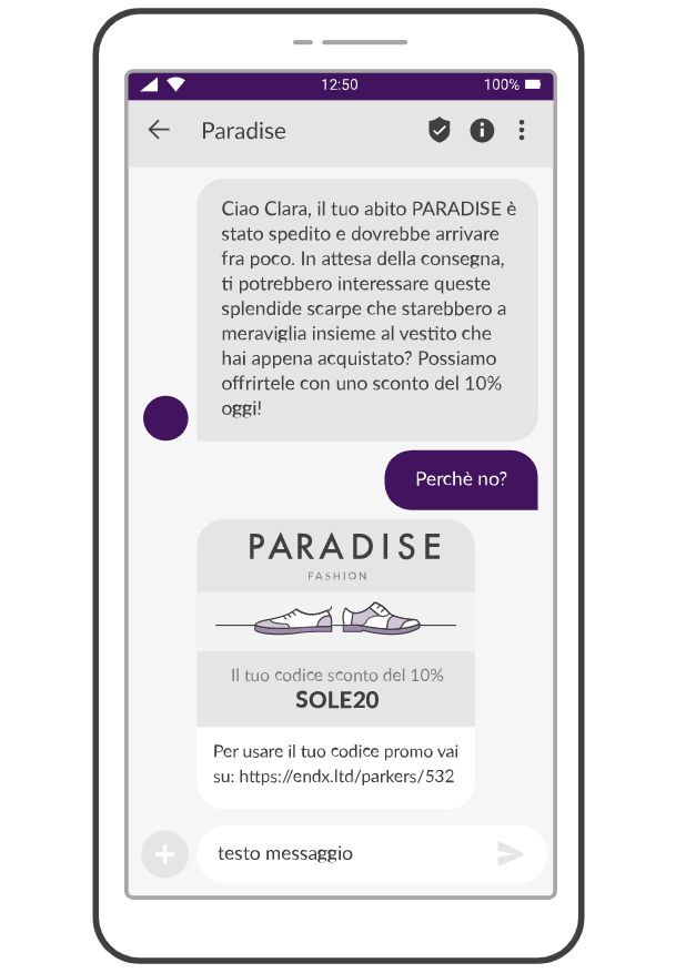 La Piattaforma Studio, mediante uno strumento integrato (Rich Messaging Builder), arricchisce i messaggi di funzionalità, come la possibilità di inviare elementi multimediali come immagini, video, codici sconto e strategie di branding dell’azienda. È possibile, inoltre, aggiungere un link al sito web dell’azienda (ad es. per ulteriori informazioni sui prodotti) oppure un link a Google Maps per verificare l’ubicazione del negozio o ancora pulsante per aggiungere un evento al calendario del cliente sul cellulare (es. iniziative, eventi, saldi).