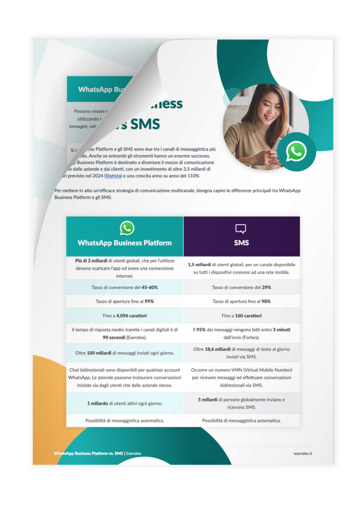 Scarica gratuitamente una copia di “SMS vs WhatsApp: la comparazione” per scoprire i due canali a confronto.